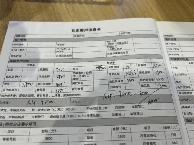 根据网民公布的价格表,途观 L 出色款 300 龙腾版的裸车价格的确是 14.99 一万元,但是需要贷款 10 一万元。再加上购置税、服务费、保险费、精品、贷款手续费,价格也去了。 17.4 一万元。但是应该 4S 店还有额外 1.3 一万元的折扣,最终落地价格为 16.1 万元。