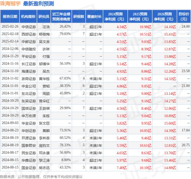 根据近三年发布的研究报告数据,西部证券之星数据中心对该股进行了深入研究,近三年平均预测准确度为 预测79.03% 2024 年度归属净利润为利润 4.57 十亿,根据现价转换预测。 PE 为 43.95。