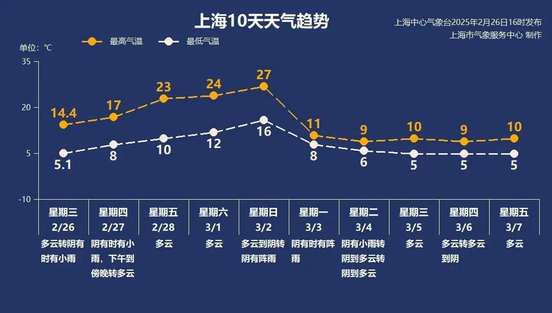 【降水降温】本周末下周初,气温将上演“悬崖式”下降。周五和周六仍然是“春秋”。“初夏”体验在周日流行。下周一,它将迅速回到冬天。随着风雨,申城可以在短短三天内完成四季穿越!