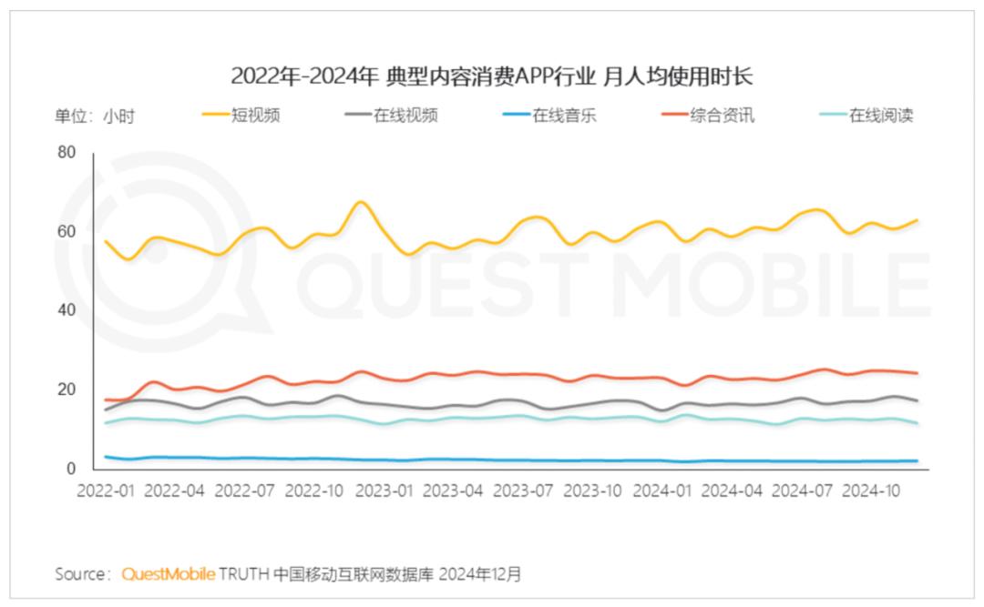事实上,在“信息茧房”问题日益激烈的讨论背后,是公众对短视频等互联网平台的信息倦怠。短视频实现全员渗透后,客户时间也撞上了无形的天花板。根据QuestMobile的数据,从2022年开始,国内短视频APP的月平均使用时间在60小时左右波动,缺乏进一步向上突破的动能。,平台之所以渴望“破茧”,是因为它希望通过扭转用户信息“挑食”,利用多样化的信息消费来促进新一轮的时间增长。