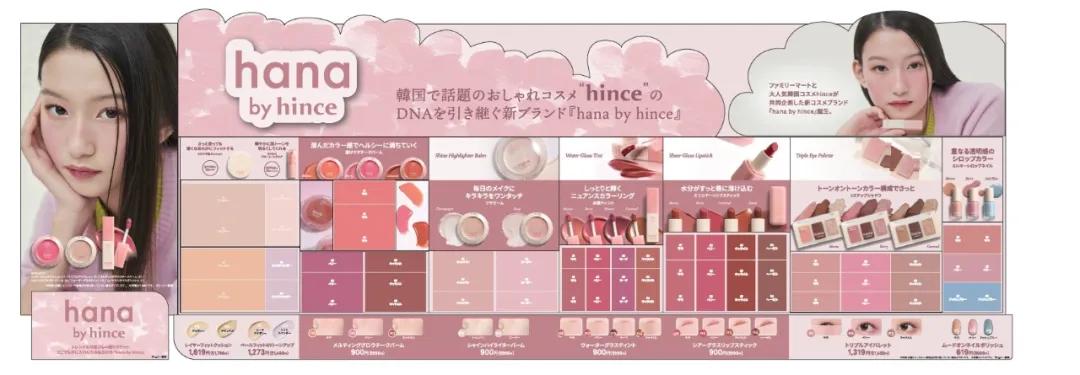 “全家人和韩国著名美妆品牌”hince“姐妹品牌合作开发,这个全新的品牌融合了日语单词”hana"(花)和韩语单词 “hince"(一、唯一),意思是“让自己的独特之美如花绽放”。