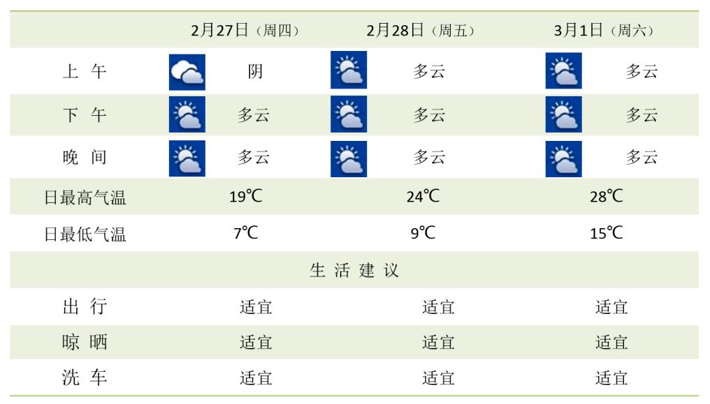 周末最高气温可达27℃至28℃