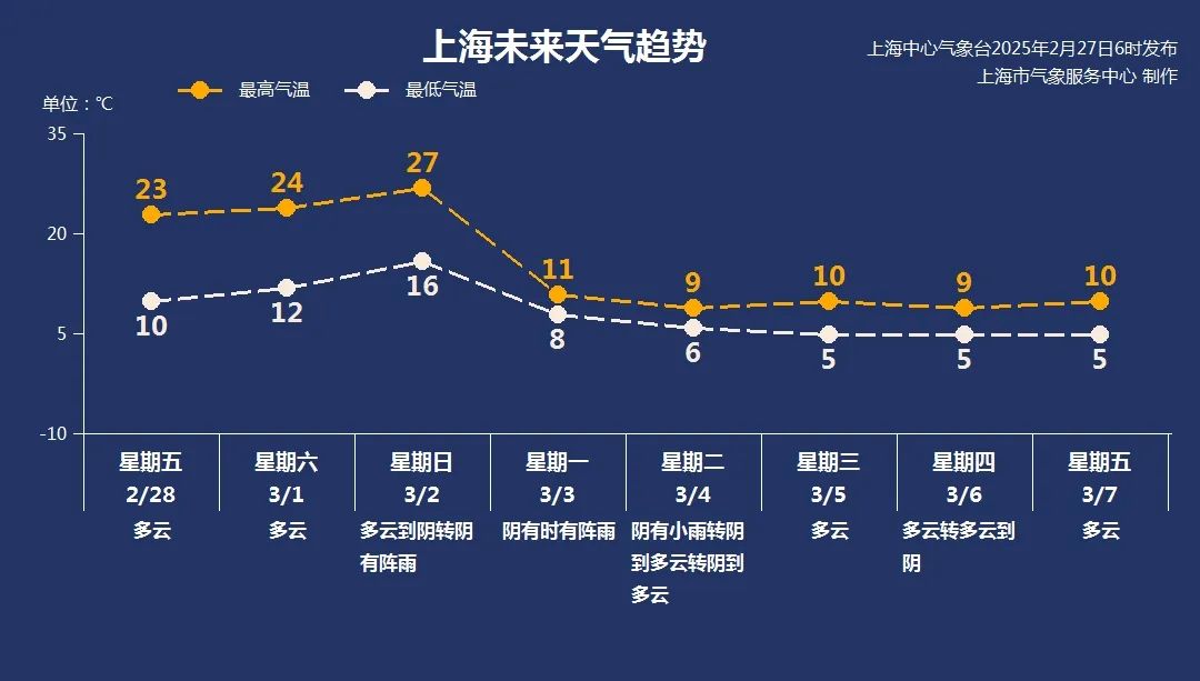 【降水降温】本周末下周初,气温将上演“悬崖式”下降。周五和周六仍然是“春秋”。“初夏”体验在周日流行。下周一,它将迅速回到冬天。随着风雨,申城可以在短短三天内完成四季穿越!
