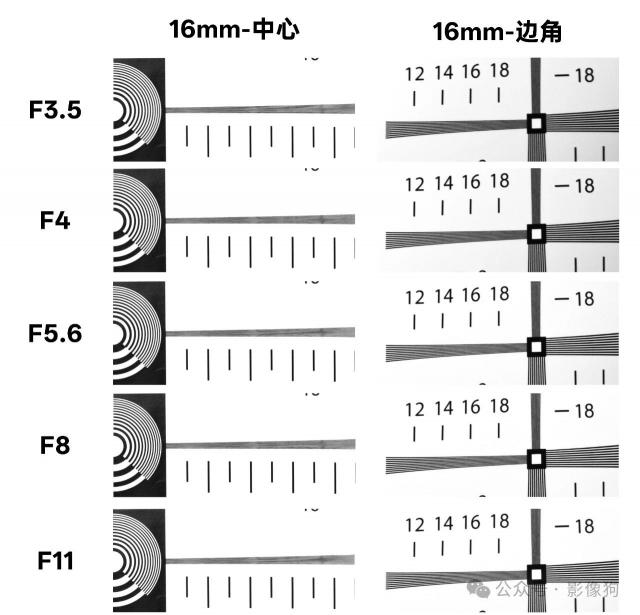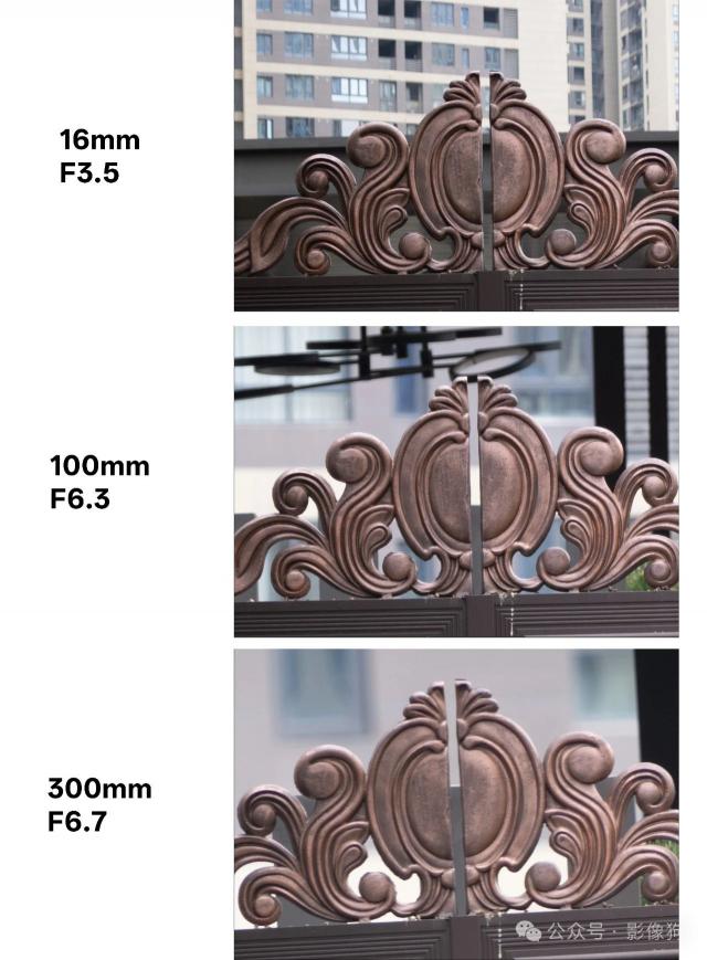 因为这个镜头的变焦范围太大,我们的拍摄空间有限,所以我们只测试过。 16mm 端和 100mm 端分辨率标版,300毫米 端子以实拍的形式展示。