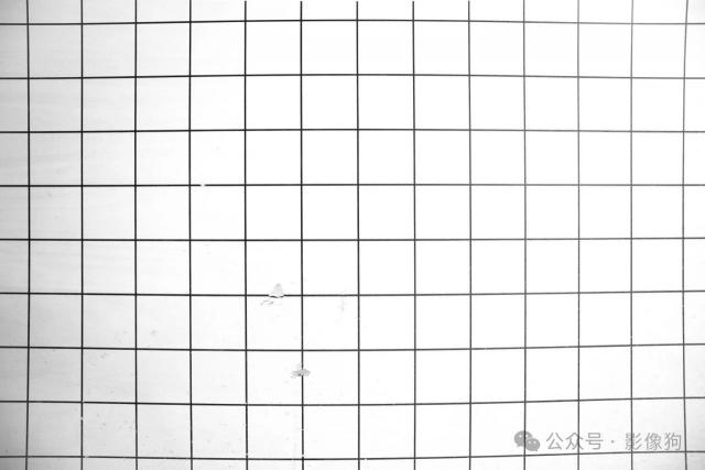 如果不使用机内校准,检测其畸变表现,16毫米。 F3.5 下面,拍摄网格测试卡,可以看到画面有一定的桶形畸变。