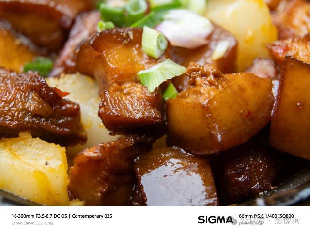 这支镜头在 70mm 上下提供了一个非常近的对焦距离。我们实际测量一下,前镜组几乎可以靠近物体拍摄。这样拍拍旅途中的美食也很好玩。看完样品,小狗看起来很贪心!