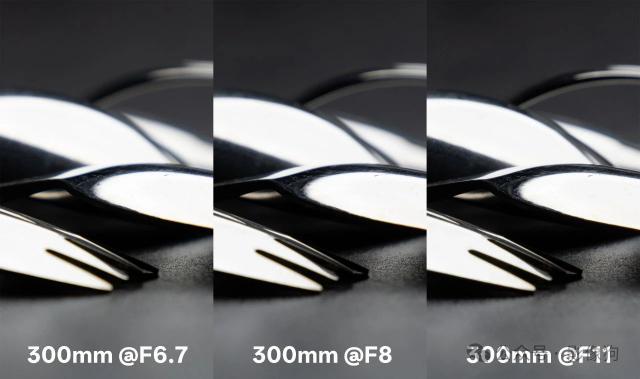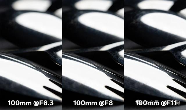 使用 500W 照相灯,照亮金属餐具表面,并在每一个焦段下拍摄,随后放大截图,观察焦内焦外散射情况。