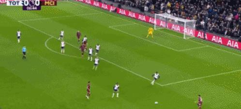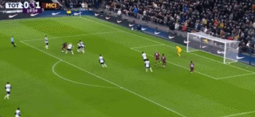 开始后,曼城的进攻如潮,持续威胁热刺的进球。