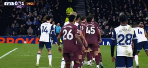 热刺换人调整后,库卢塞夫斯基、孙兴邈替补出场,随后不久,曼城派出了福登,B 席。