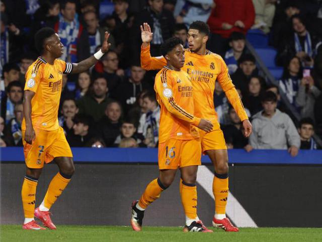 北京时间 2 月 27 日凌晨 4 点 30 得分,国王杯半决赛第一轮,皇马客场挑战皇家社会。贝林厄姆送出精彩助攻,18 年轻球员恩德里克破门,获得赛季第一名。 6 球。皇马 1-0 击败皇家社会,一只脚进入决赛。四 月 2 第二轮,皇马回到伯纳乌球场,对皇家社会进行决战。