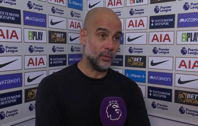 在带队 1-0 曼城主教练瓜迪奥拉在客场击败热刺后接受媒体采访。