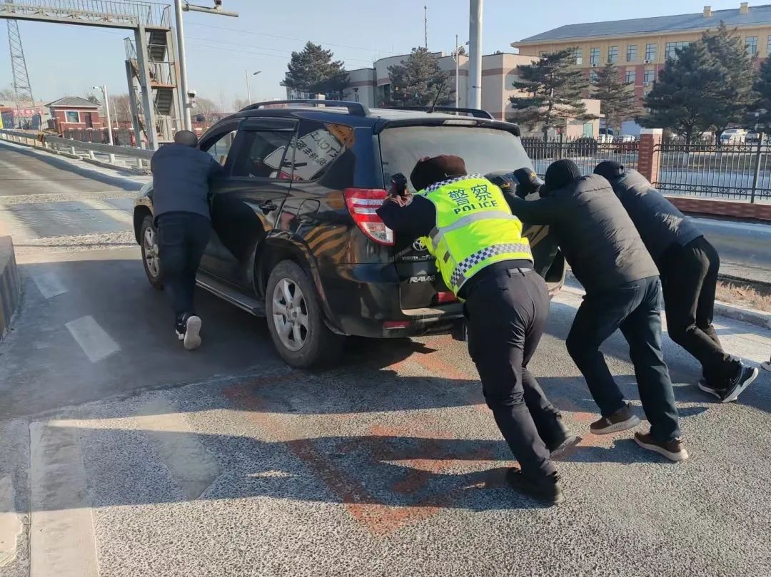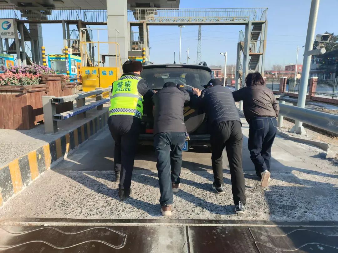 在保证安全的前提下,采用“人力推车” “精准指导”的处置方案:驾驶员控制方向系统,警方和群众共同推动故障车辆,最终将车辆安全转移到收费站外的安全区域,有效解决交通安全隐患。