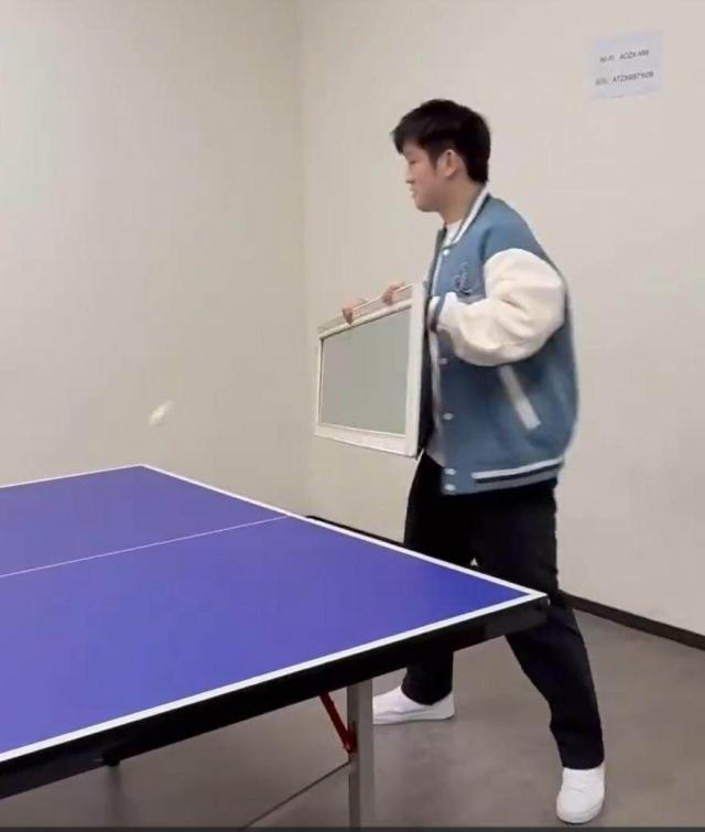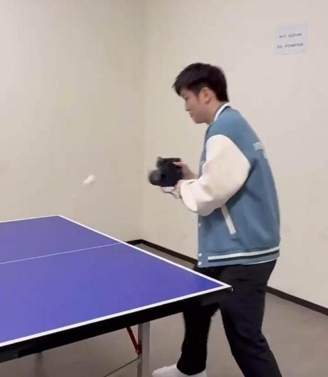 樊振东和“黄老板”打乒乓球,相机、吉他、垃圾箱都成了球拍。
