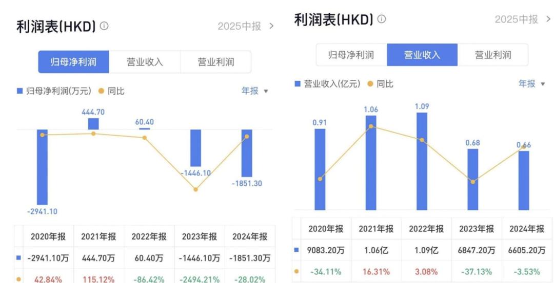 尤其近四年来,消费者对奢侈品的需求急剧下降,导致其珠宝业务收入持续下降。2021年报告至2024年报告,中国环保能源收入分别为1.06亿元、1.09亿元、6847.2万元、6605.2万元,归母净利润分别为444.7万元、60.4万元、-1446.1万元和-1851.3万元。