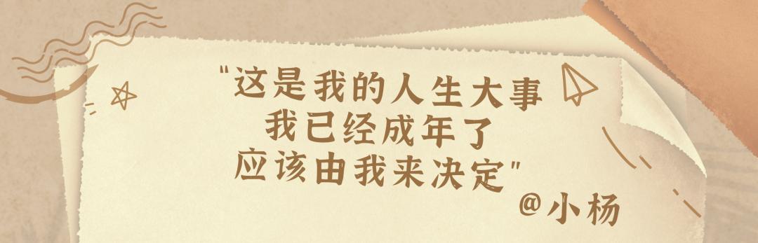 小杨解释说,虽然她的想法和父母不一样,但她也理解父母的想法。毕竟社会在变,两代人的想法也会不一样。