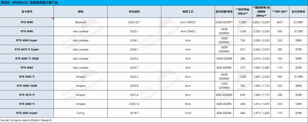 2)游戏业务:企业在独显市场仍处于领先地位,目前主要产品为RTX40系列,主要客户为玩家和PC制造商等;