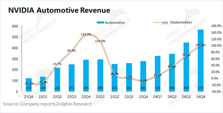 3.3 汽车业务:英伟达汽车业务在2025财年第四季度实现营收5.7亿美元,同比增长103%,在自动驾驶平台的推动下,英伟达的汽车业务主要来自。