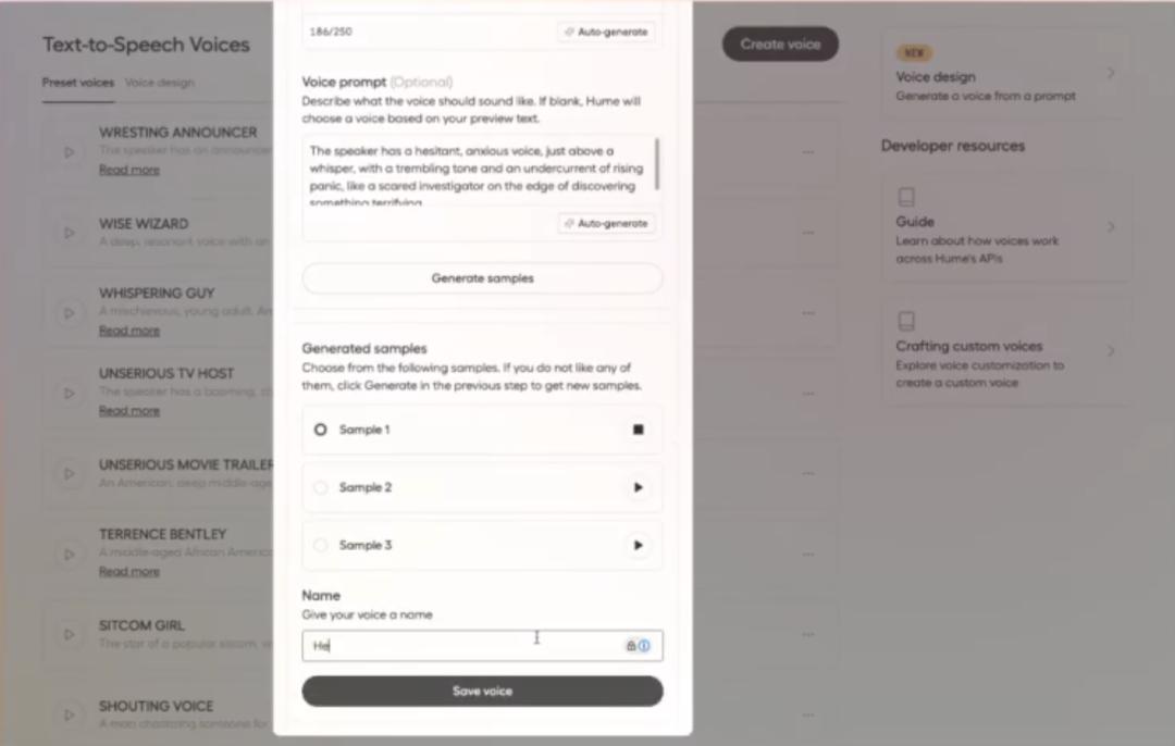 此外,在语音设计功能中,您还可以通过更具体的角色描述来引导Octave,例如结合特定的口音、个人设计特征和专业类型。描述类似于“耐心、同理心、用ASMR说话的顾问”。、“戏剧性的中世纪骑士”、中年人好莱坞电影预告片讲解员。