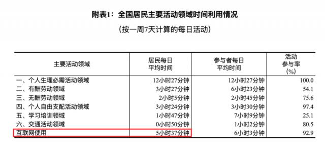 2024 年 10 1月,国家统计局发布了《第三次全国时间利用调查公报》,显示中国居民平均每天上网时间已经达到 5 小时 37 分钟。