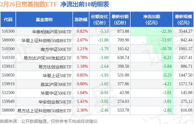2月26日,宽基指数ETF净流出108.47亿元