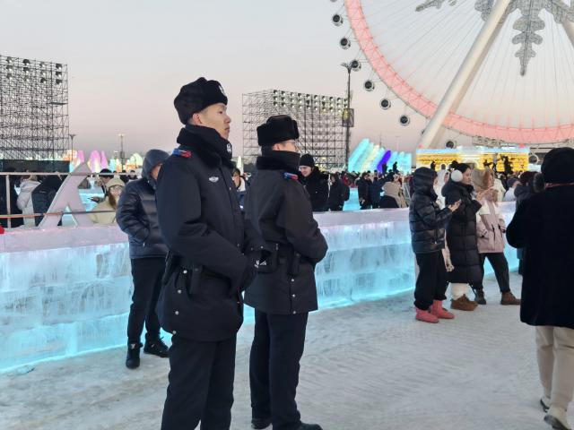 景区业务人员、保安、警察、清洁工等都在这个冰雪天地的公园里,每个岗位都在全力满足游客的需求。