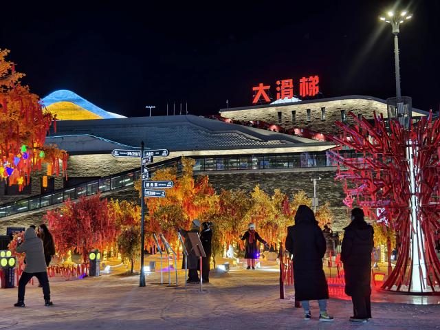 这时,公园里的每个人仍然沉浸在美丽的风景和欢乐中:仍然有人在大滑梯入口排队;祈祷森林的红色场景仍然是拍照的必备场景;每栋冰建筑前都有人留下了今年冬天的记忆;小滑梯也是娃娃们流连忘返的天堂...