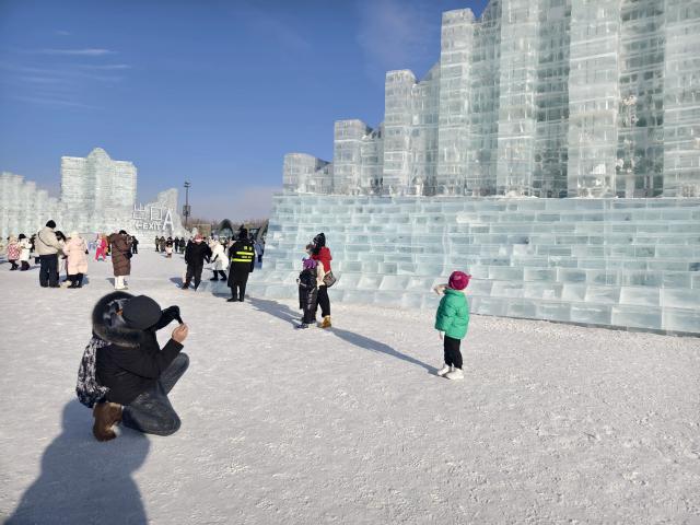 "父亲,为什么不让我爬上去?" 5 在年迈的女儿旁边,市民李先生耐心地向孩子们解释:“因为天气暖和,冰要融化了,爬起来很危险。”李先生特意选择在这样的一天带女儿去冰雪世界。“作为当地人,孩子们应该知道如何欣赏和理解冰雪。他们应该从小就知道这一点。 ' 消失的艺术 ',这就是我们哈尔滨人的浪漫。"