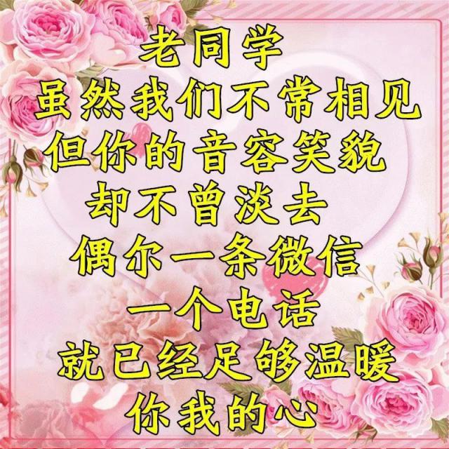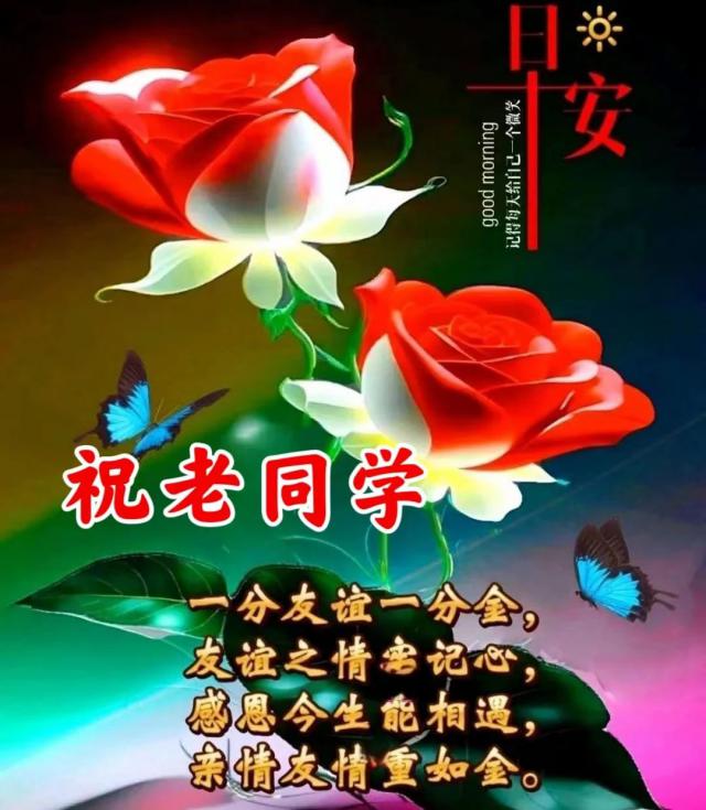 一个祝福,一个问候,一个关心,一个祝福,每天的问候不是一种方式,而是一种关心和关心。只有感恩才能得到,珍惜才会天长地久。祝大家天天开心!老同学,早上好!