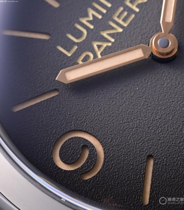 而 Luminor 庐米诺标志性手表护桥,仍然是拉丝处理,与表壳形成对比。表面防水 100 米。