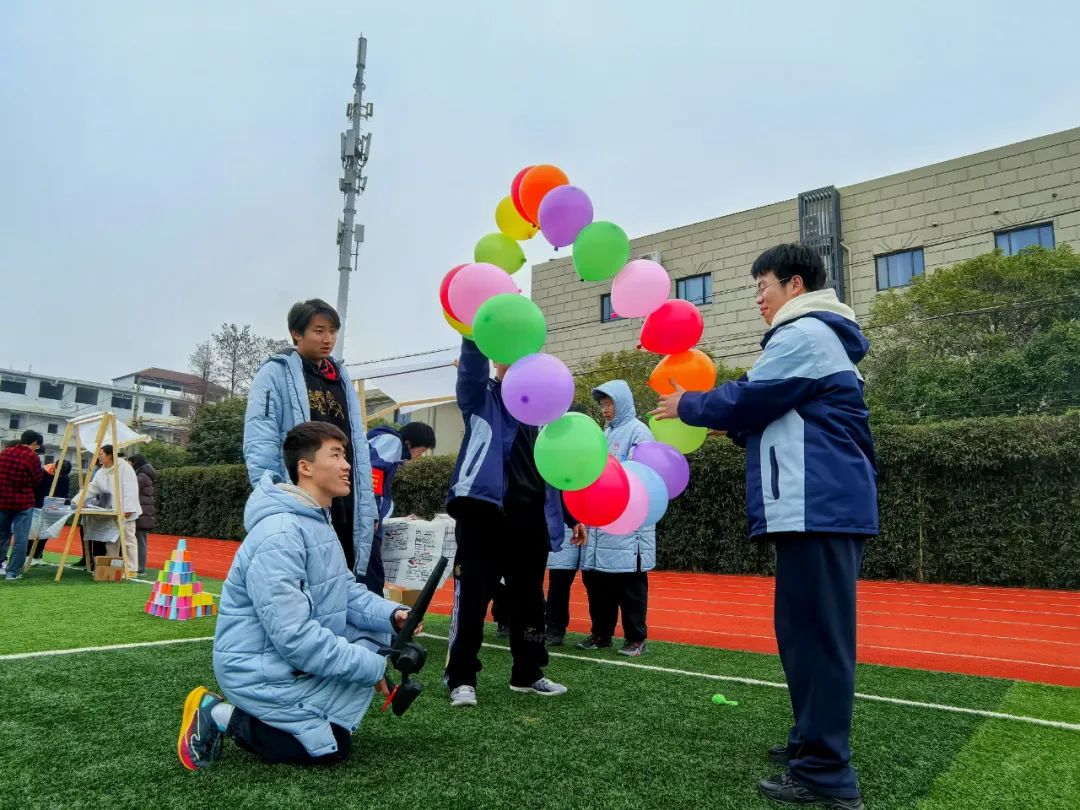 下午,足球场上依次排除了13个摊位。除了空气炮、旋转汽球圈、烟雾反应奇特、紫甘蓝法术变色等科学实验互动游戏外,还有“你说我猜”、“混史恶魔”、“说唱咖啡”的挑战赛。每一个摊位都有趣有趣,甚至英语单词拼写、红楼梦知识竞赛、花式跳绳等常见场景也变得有趣起来。体育专业学生陆吴英姿首先挑战了一分钟跳绳。她笑着说:“对我来说,这是一道小菜。为了我最喜欢的运动,我必须展示它!“高一(14)班的学生张瑞凌在参观了所有的摊位后惊讶地发现,在互动挑战的过程中,他在课堂上对重点知识知之甚少。