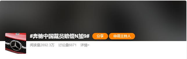 二月二十七日,“奔驰中国裁员赔偿N加9”冲上微博热搜。