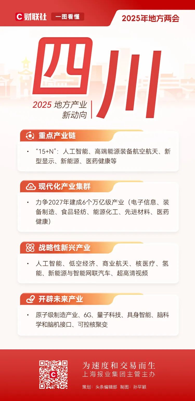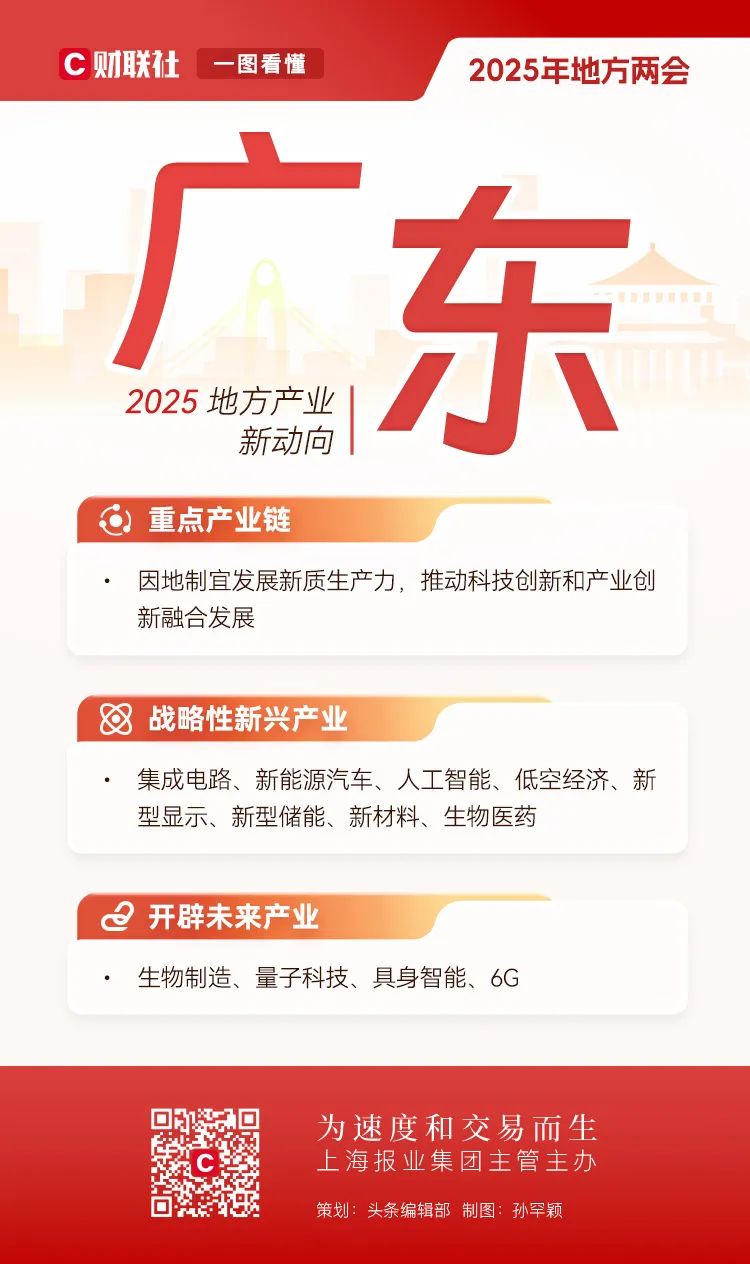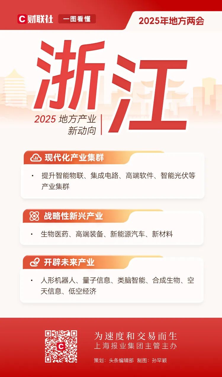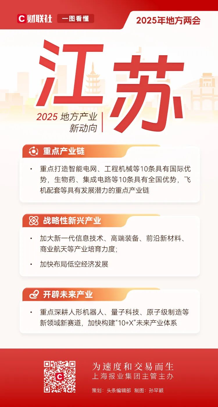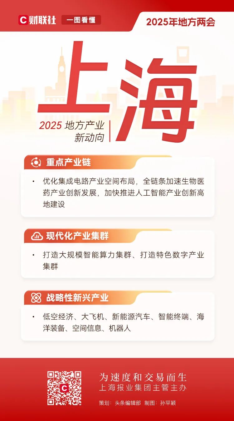 地方两会相继在全国各省市召开,在地方政府工作报告中也包含了全国两会的前瞻性信号。全国人大前夕,财联社对2025年地方产业布局的新趋势进行了深入解码。
