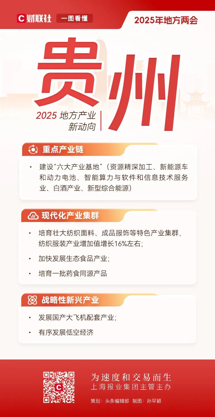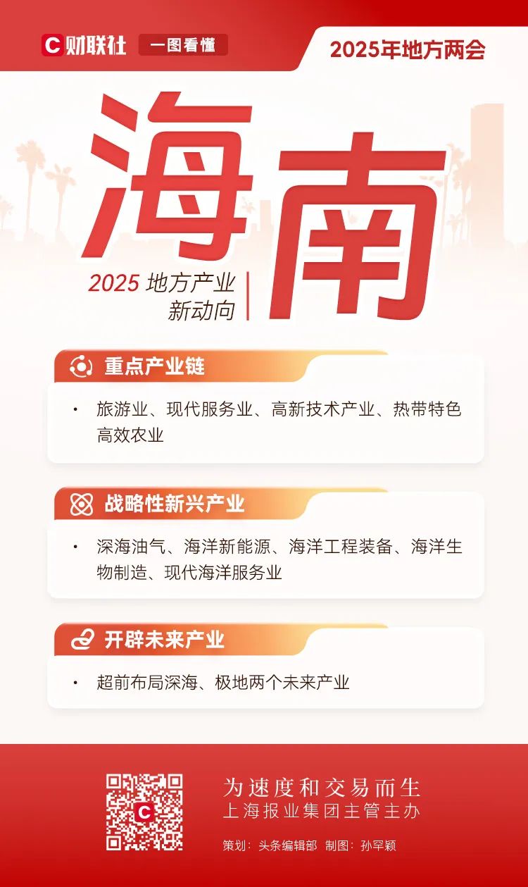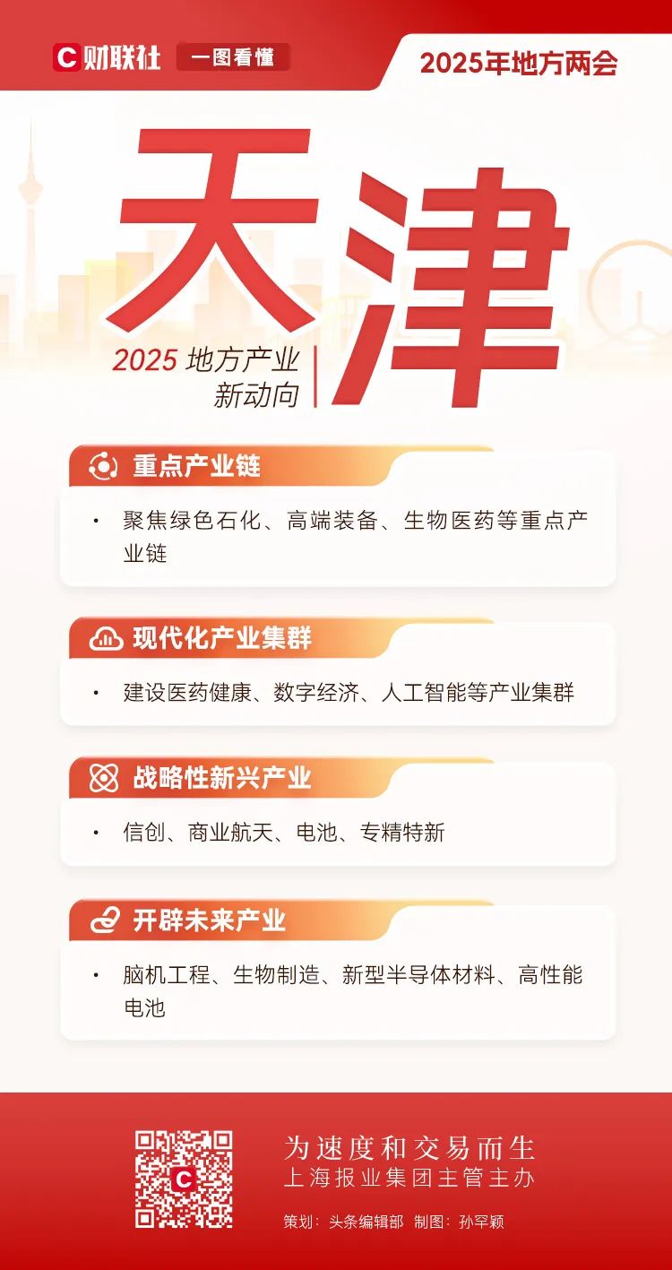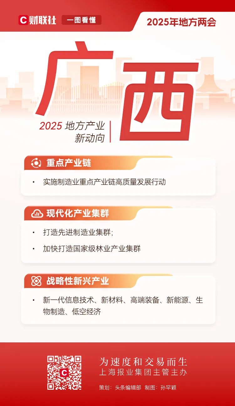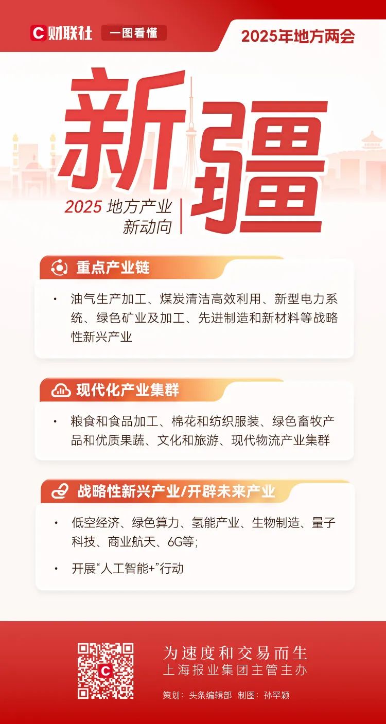 地方两会相继在全国各省市召开,在地方政府工作报告中也包含了全国两会的前瞻性信号。全国人大前夕,财联社对2025年地方产业布局的新趋势进行了深入解码。