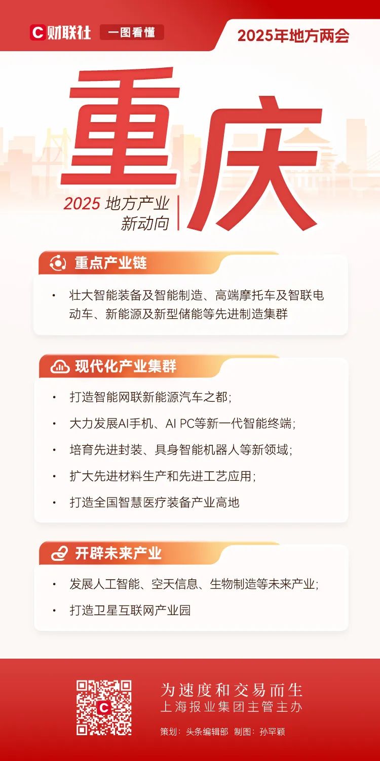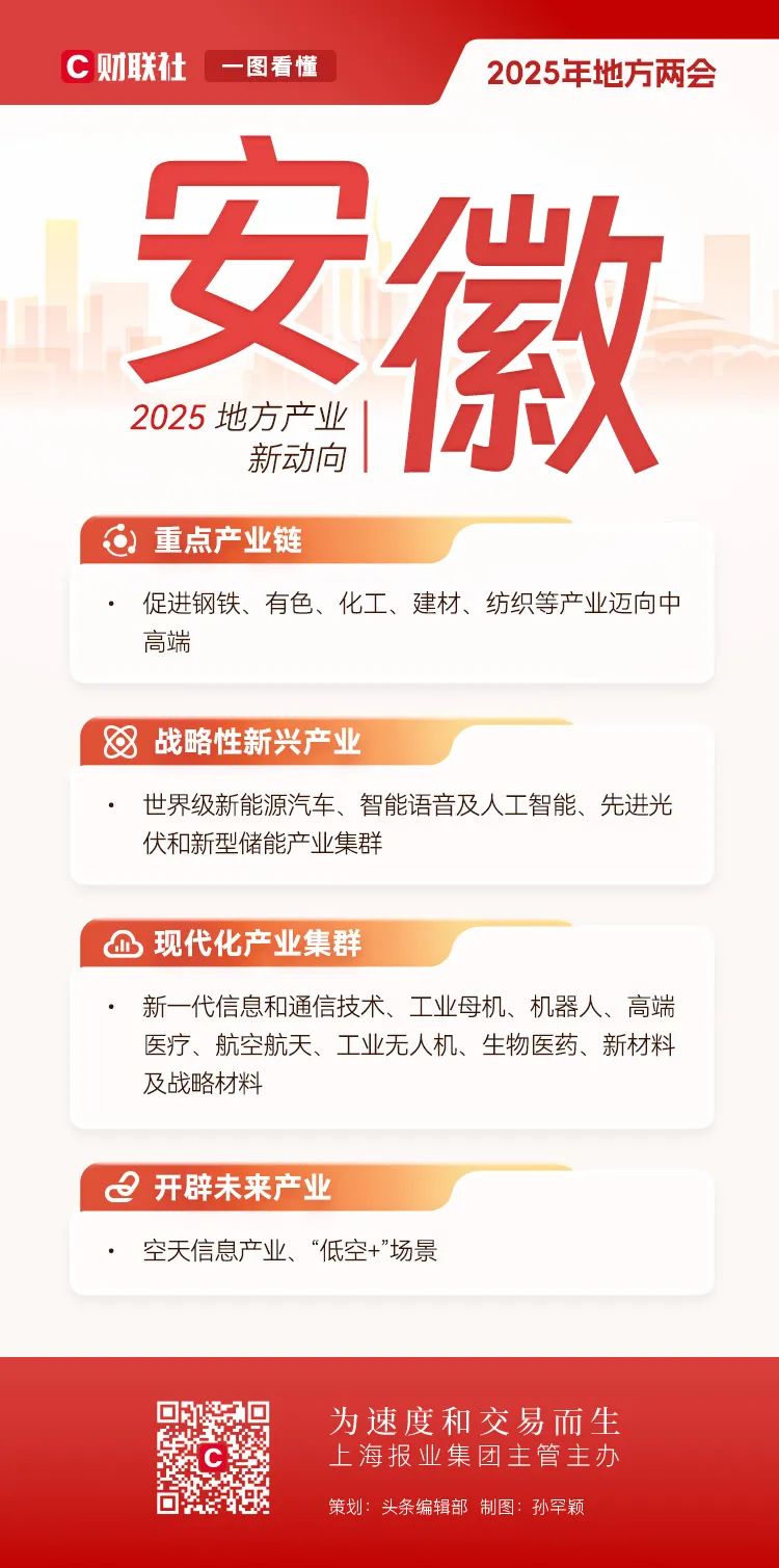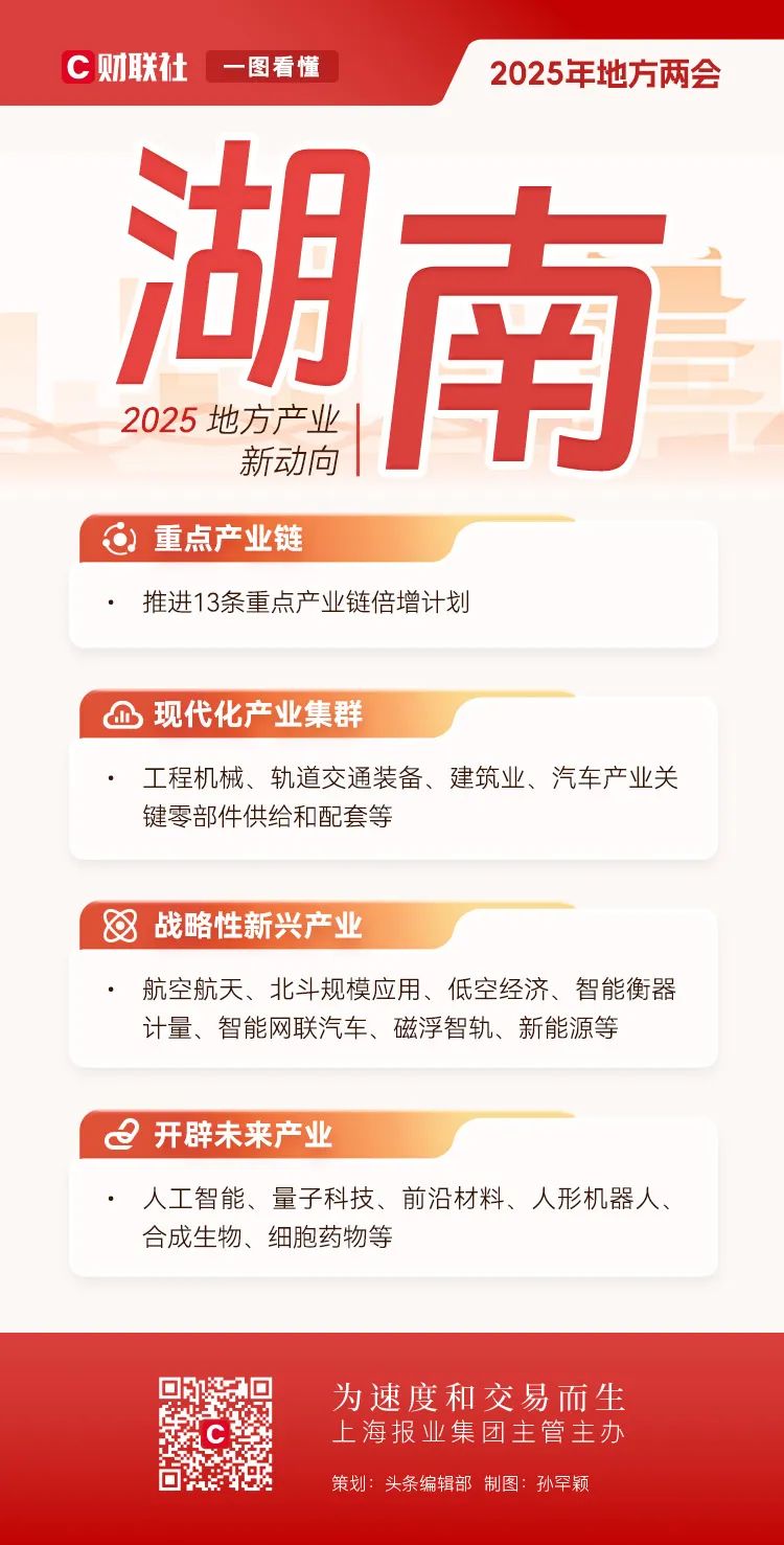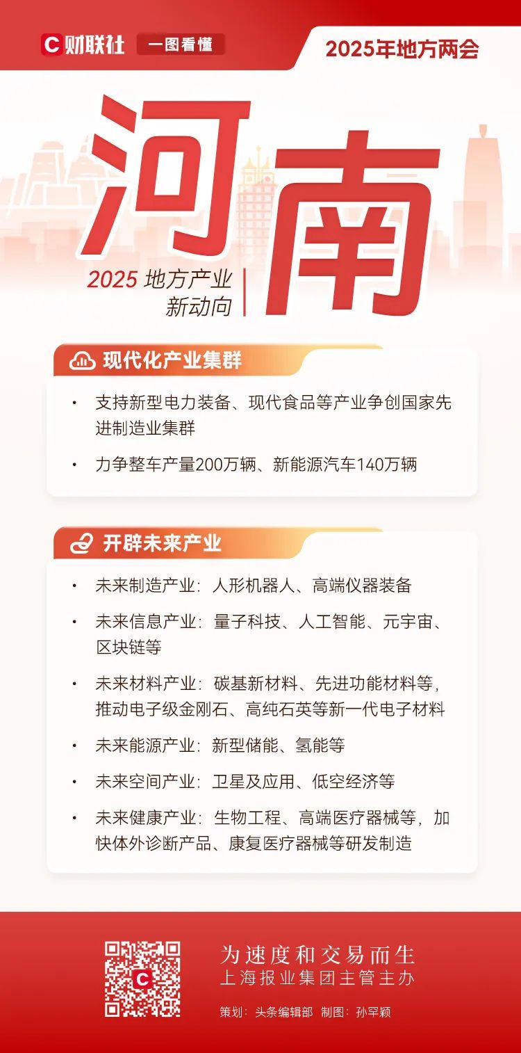 地方两会相继在全国各省市召开,在地方政府工作报告中也包含了全国两会的前瞻性信号。全国人大前夕,财联社对2025年地方产业布局的新趋势进行了深入解码。