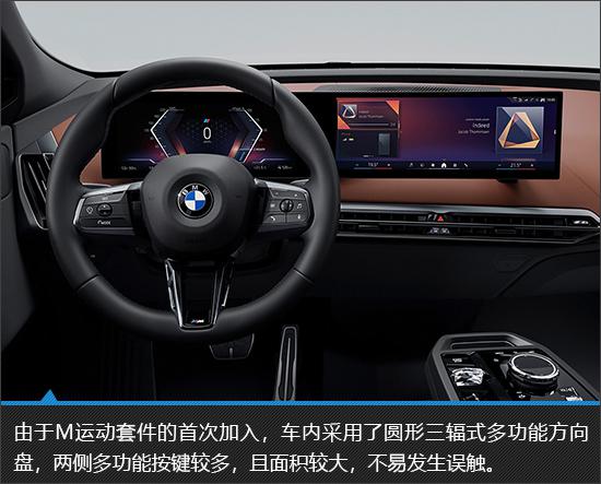 新款宝马 iX 内饰同样针对细节进行升级,而且因为内饰也是如此, M 随着运动套件的加入,新车还将首次采用圆形三辐多功能方向盘和专属运动座椅。另外,海外新款宝马 iX 汽车搭载的是 iDrive 8.5 在未来引入国内的操作系统中,预计将配置。 iDrive 9 操作系统,整体的流畅性和逻辑性将得到显著提高。