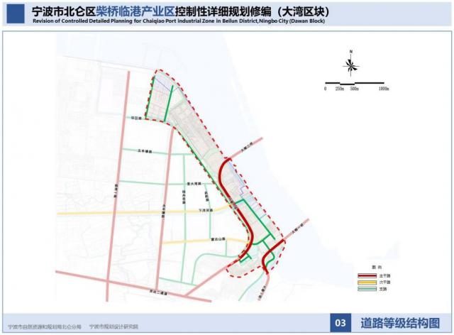 路网规划在上面,路面分为两个层次:主干道和环路。块内以环路为主。本次规划以原路网为基础,结合地块开发需要,增加。 2 环路;主干道为大榭一桥、大榭二桥,主要为过境交通服务。