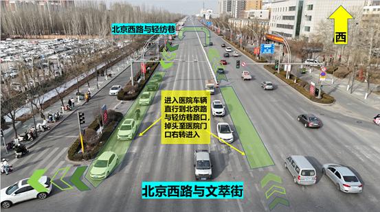 需进入中医研究所的车辆,请在这个路口直行到北京西路和轻纺巷的下一个路口,从最右边的车道排队。