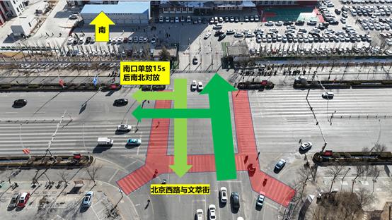 其次,时间调整了北京西路和文萃街十字路口信号灯的配时方案,将15s优先车辆放在南口出院,然后放在南北,减少车辆矛盾。