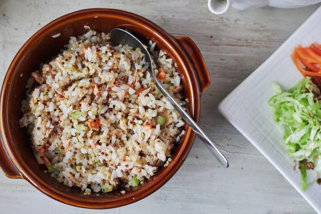 与简单的精白米粉相比,一般与菜、肉、蛋结合的晚餐。 GI 价值通常较低。但是最好选择一些糖油盐加少的,脂肪馅少的。