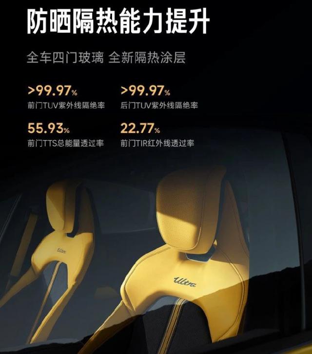 考虑到以前的小米 SU7 许多女性用户购买,这次小米 SU7 Ultra ,此外,整车四门玻璃采用全新的隔热涂层,进一步提高防晒隔热能力;