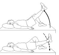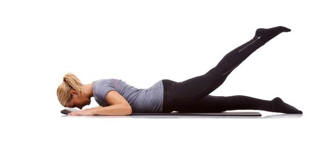 平躺,双腿伸直。收紧臀部肌肉和一条腿的腿筋,然后向天花板方向抬起,保持 3~5 秒,减少。