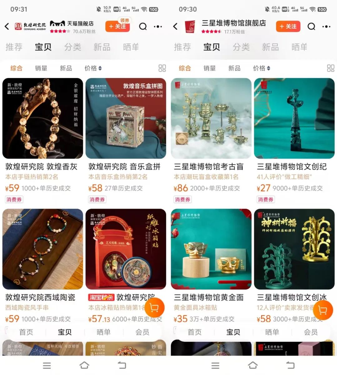 三星堆博物院、敦煌研究院旗舰店 来源:网络