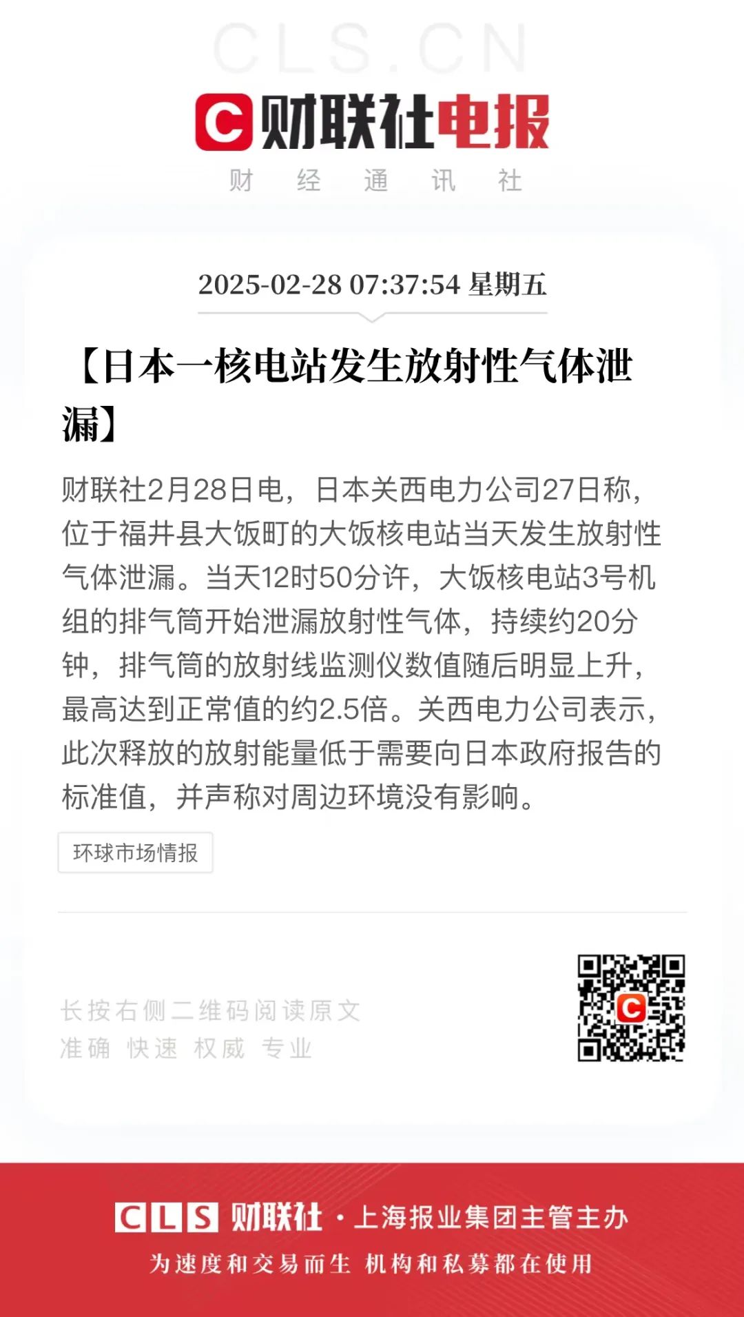 原题:日本一核电厂发生放射性气体泄漏。