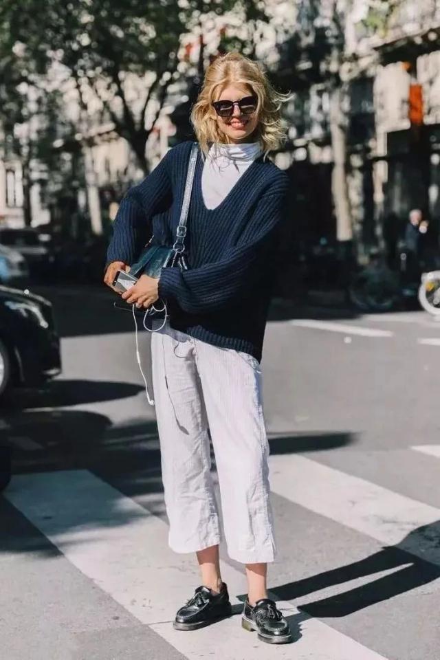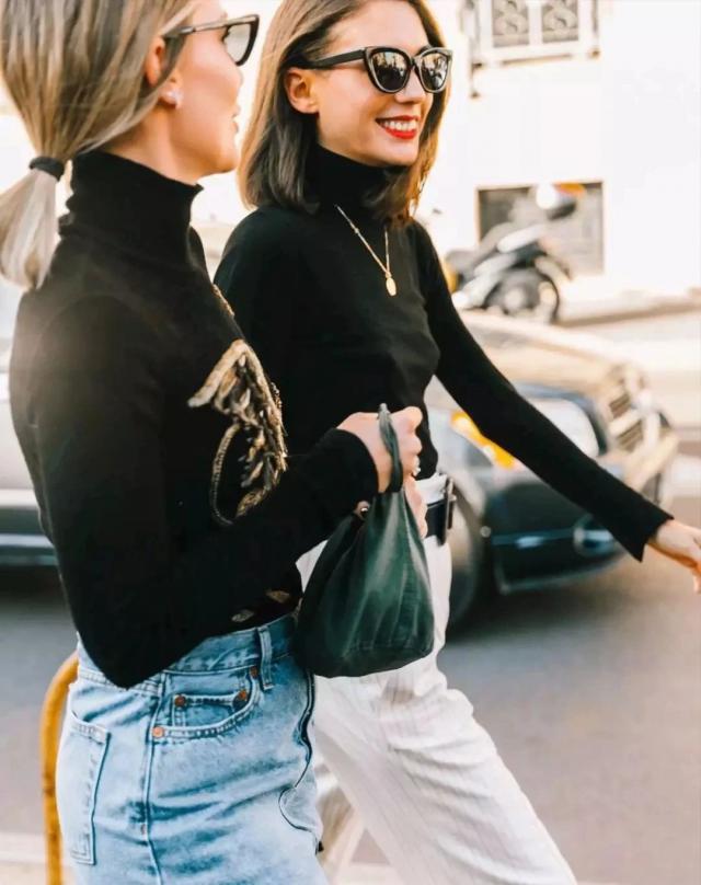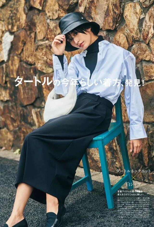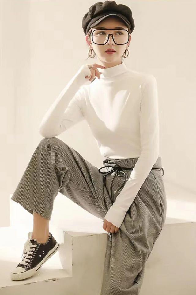 就像夏天离不开白色 T,秋季也没有什么组合可以少一件。"基本款打底衣"。