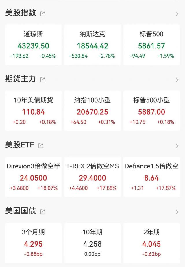 经过一天的剧烈波动,美国股市大幅下跌,这主要受到特朗普总统宣布继续推动加拿大和墨西哥关税征收的消息以及英伟达财务报告公布后股价大幅下跌的影响。