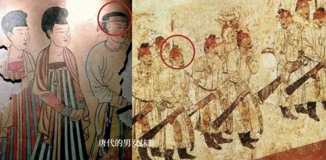 先讲结论,这叫"抹额“,“抹”就是勒束,抹额就是把布或织锦等材料折叠或切成条状,围在额头上的一种装饰。男人和女人都可以用。唐朝的抹额比较宽,类似于我们现在的“运动发带”功能。新唐书 · 食货志》载 : "成甫又广为歌词十? , 绿色的衣服,锦半臂,红抹额立…”