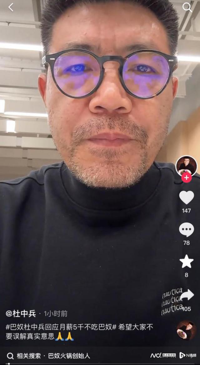 2 月 26 日本,杜中兵通过个人视频账号回应此事,以为是曲解意思。杜中兵说:“我昨天提到‘火锅不是为底层人民服务’,‘月薪’ 5000 钱不能吃火锅,吃点串香就行了,等等。这些话不是连在一起说的,如果连在一起说的话,就会曲解我的真实本意。“杜中兵进一步解释说,以前火锅比较便宜,现在不断上涨,“底层”消费者越来越难消费火锅,这不是一个好现象。但是如果一个品牌没有自我定位,没有自己的方向,就更难做好。“巴奴其实在行业内还是比较贵的。”我想让更多的人说我好。我也希望我的品牌和客户能在这里享受到更高的质量,所以我很纠结。"