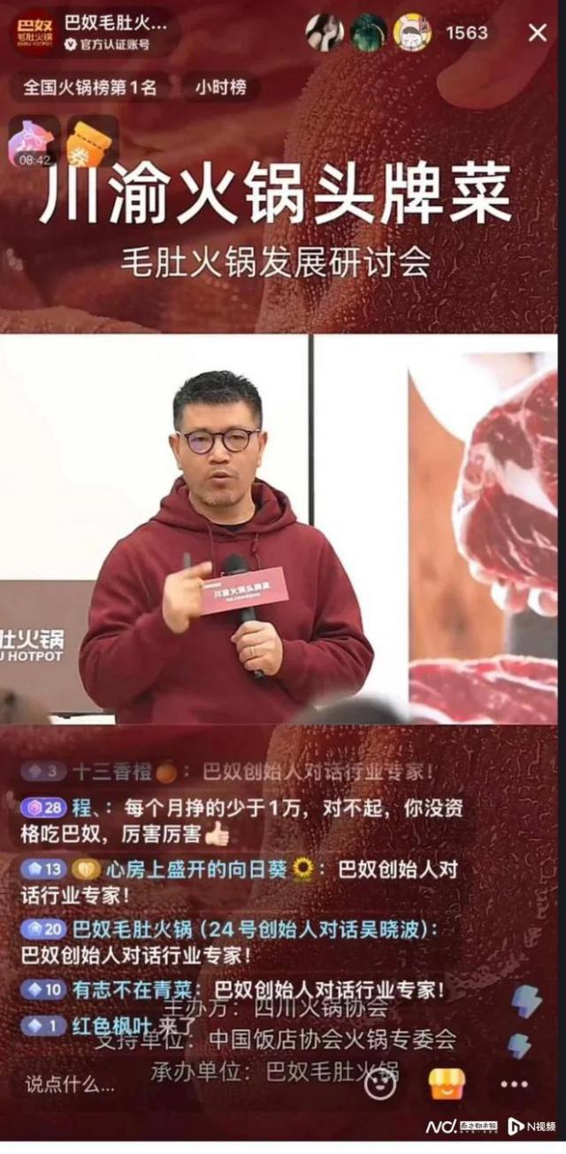 宣称"月薪 5000 “元不能吃巴奴”,巴奴毛肚火锅创始人杜中兵在直播中的言论引起争议。