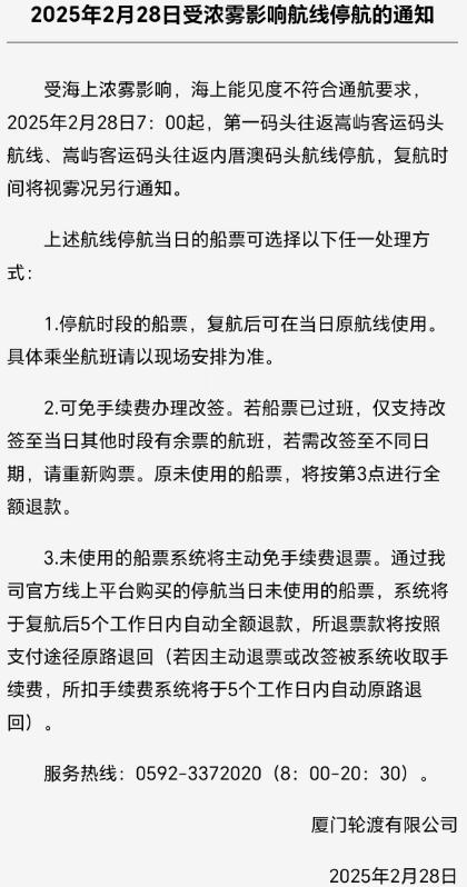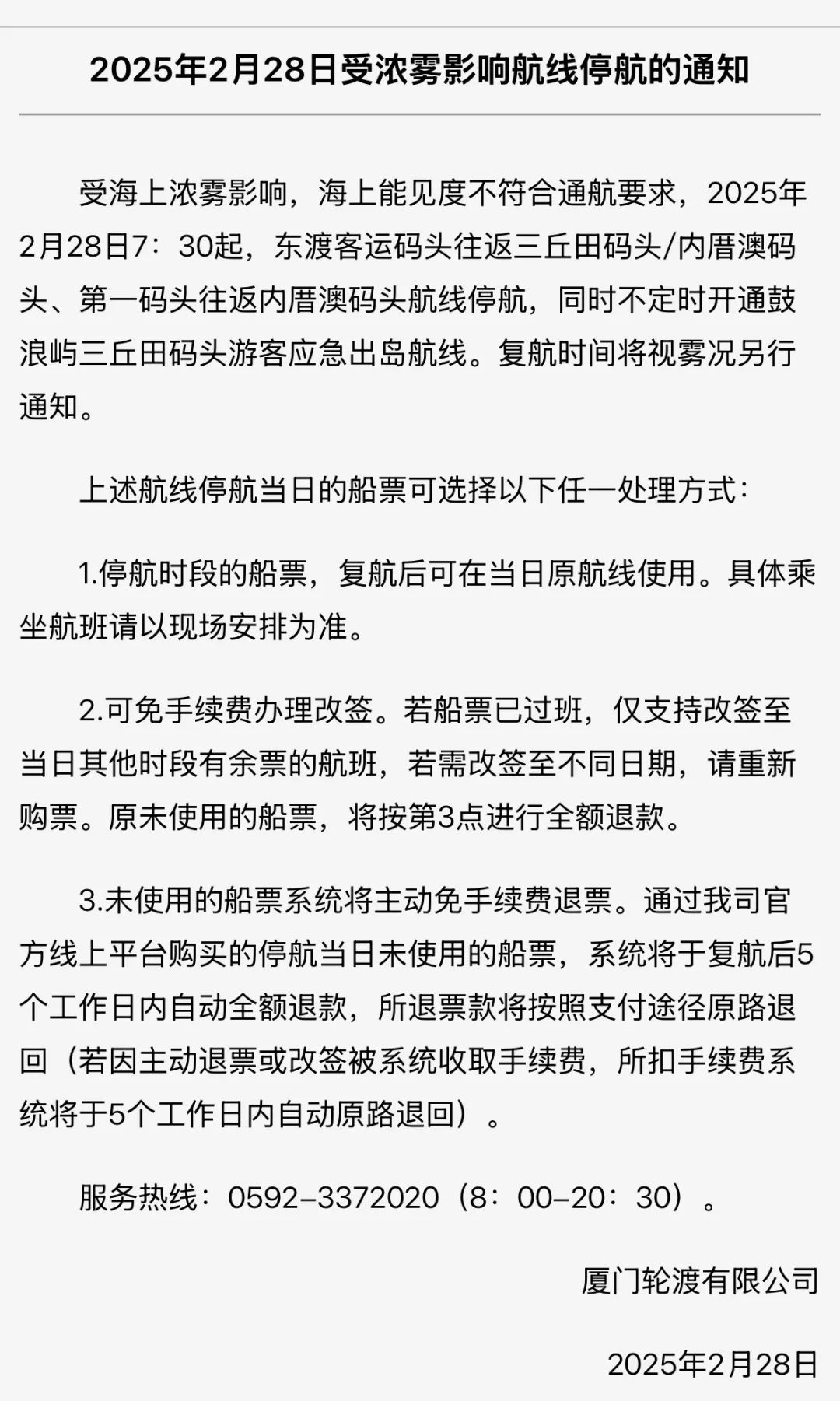 东渡客运码头往返三丘田码头/库库澳码头、第一码头往返库库库澳码头航道停航,鼓浪屿三丘田码头游客紧急出岛航道不时开通。