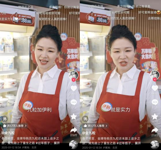 与抖音、微博等平台相关的话题累计播放量超过2亿次,其中「伊利加九粒就是力量」等谐音梗台词更是成为二次创作的热门素材,引起网友的广泛参与。